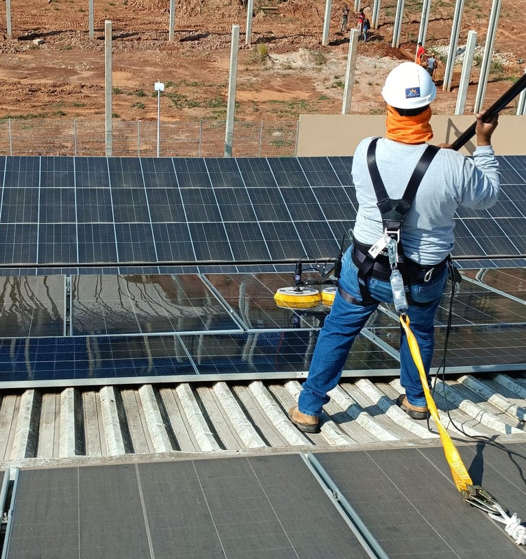 Remoção de sujeira, poeira, detritos e acúmulo de poluentes que podem reduzir a eficiência dos painéis.